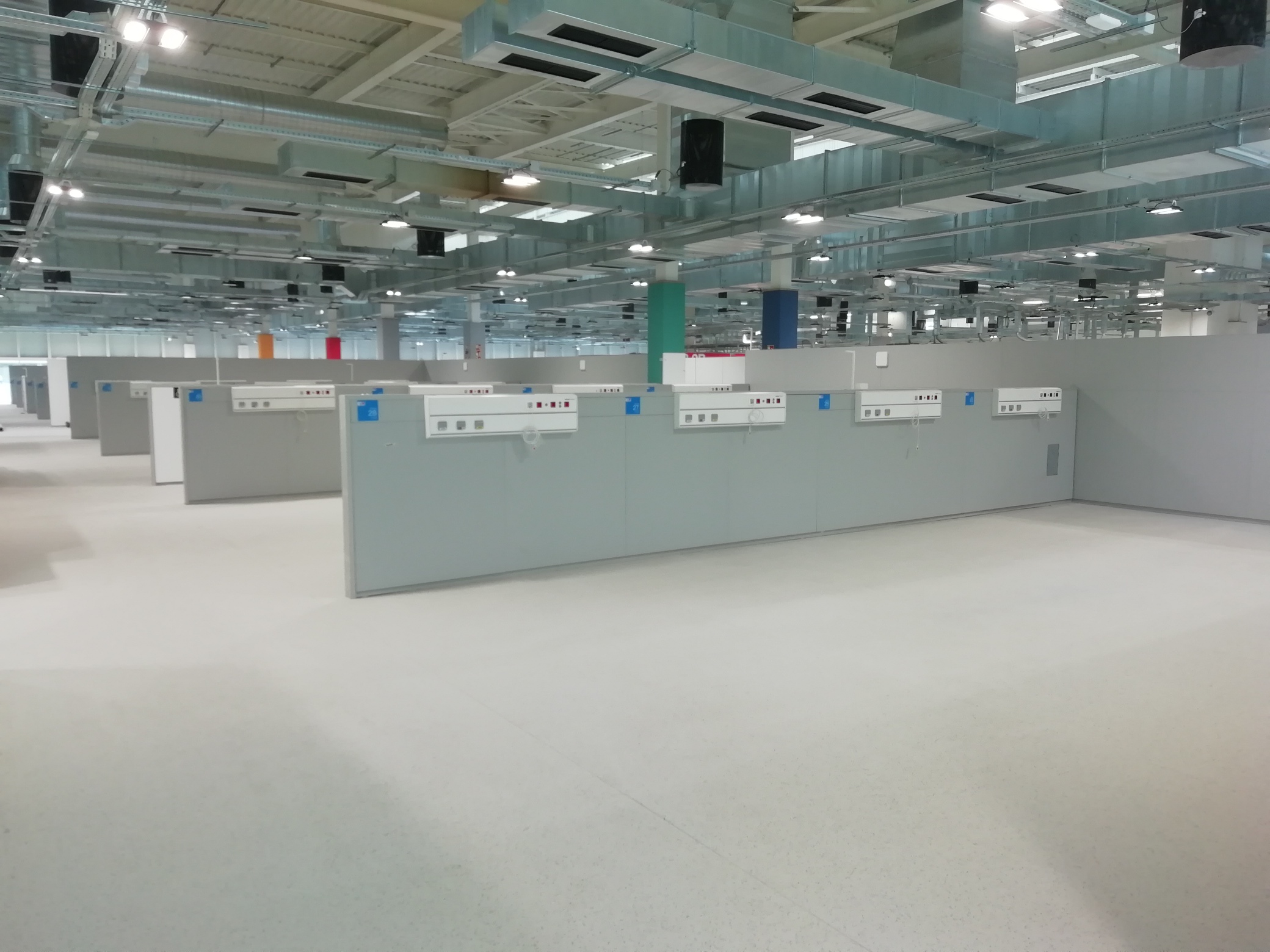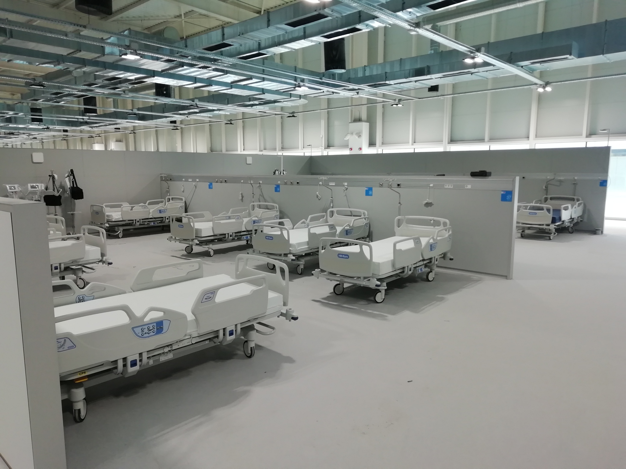 Para la infraestructura del Hospital de Emergencias Enfermera Isabel Zendal de Madrid, se han usado mamparas para hospitales compuestas por paneles ciegos, adaptados a la necesidad del proyecto.